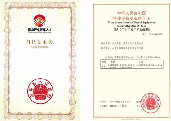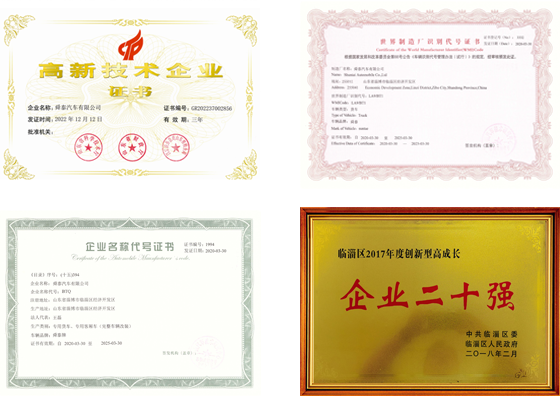 省泰山產業領軍人才企業、高新技術企業、省科技型中小企業、 特種設備制造許可企業、工信部目錄內專用車生產企業